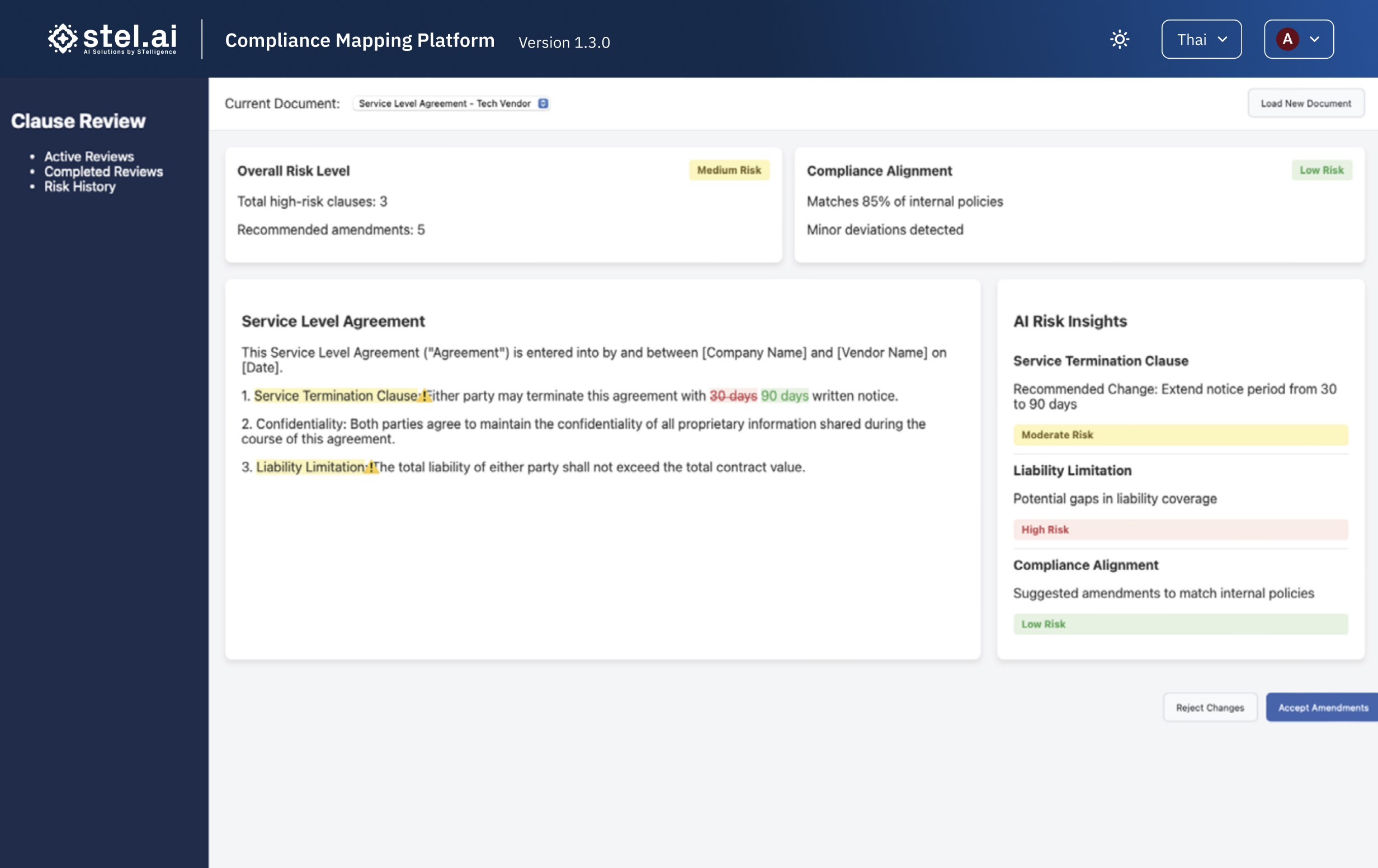 Our platform enables you to process unstructured legal content like contracts and policies with ease, streamline workflows through intuitive, role-based reviews—no chatbots required—and tailor compliance to your internal policies and standards. Legal teams can draft, review, and map compliance 10× faster, surface high-risk clauses early, and confidently scale operations while staying audit-ready and defensible.
